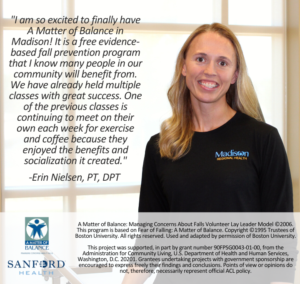 A Matter of Balance is an award-winning program designed to manage falls and increase activity levels. You will learn to: Set goals for increasing activity Reduce fall risks at home Exercise to increase strength and balance Safely get up if